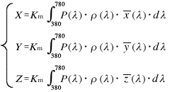 Light with spectral distribution characteristics of P (λ) · ρ (λ) enters the eye and stimulates the L-, M-, and S-cones on the retina. When the stimulus values are expressed as X, Y, and Z, respectively, the following can be written: