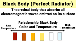 A blackbody absorbs all incident electromagnetic waves, regardless of wavelength without any reflection, so at room temperature, it appears completely black. In reality, objects that look "completely black" still reflect some light, so a perfect blackbody does not exist and is considered a theoretical concept. Charcoal, coal, and molten iron are relatively close to being a blackbody.