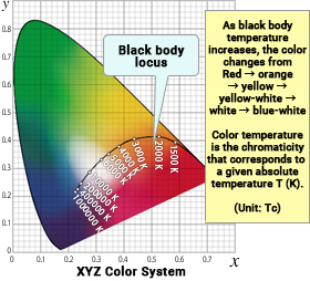 As explained in previous chapters, the color of light can be objectively and accurately defined by specifying the chromaticity coordinates (x, y) in the XYZ color system. However, apart from color specialists, few can immediately associate coordinates with a color. Humans naturally find it easier to understand one-dimensional numbers. Color temperature is a practical value that expresses approximate color with a single number (at the expense of accuracy).