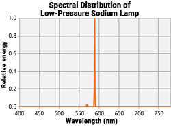 The spectral distribution of low-pressure sodium lamps is a line spectrum around 589 nm, known as the D-line, with almost no other wavelength components, giving it an orange appearance. This line is on the longer wavelength side of the visible spectrum, making it less prone to scattering and providing good visibility, which is crucial for safety in tunnels.