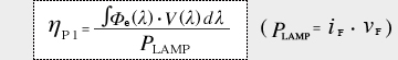 This is the ratio of the total luminous flux (lm) emitted by the lamp to the power consumed by the lamp alone (W), excluding the power consumed by the driver circuit. If the lamp generates a lot of heat, ηP1 will be lower.