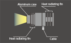 This LED Light Source achieved highest level in the industry with 2 million lx. The light output exceeds that of a 250-W metal halide light source.