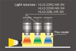 The red, blue, and green light illuminated from the dedicated light source is blended inside this unit, achieving the illumination color perfect for the workpiece.