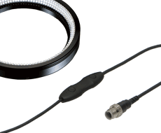 This Light Unit with lntensity Control Unit emits white light and has an outer diameter of 132 mm, an inner diameter of 96 mm, and a height of 22 mm.