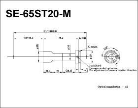 High-resolution telecentric lens with a magnification of 2.0x.Straight type.Working deistance of 65.2 mm.