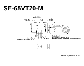 High-resolution telecentric lens with a magnification of 2.0x.Coaxial type.Working deistance of 65.2 mm.